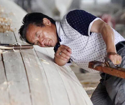 廠長許桂生從事龍舟制作已有30余年歷史,為繼承祖?zhèn)髦圃忑堉鄹挥幸欢ǖ慕?jīng)驗